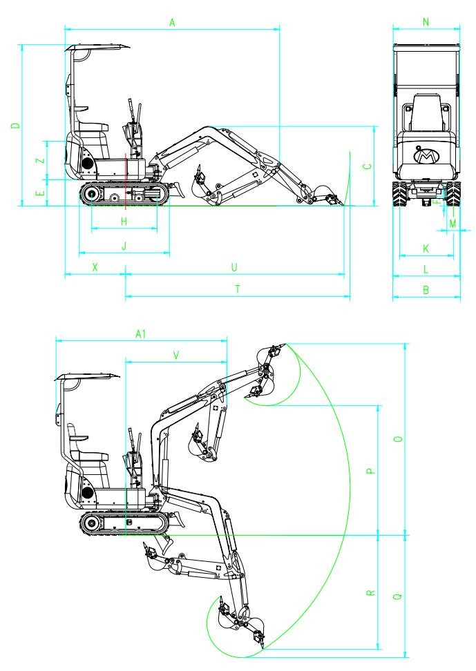 V-Min. swing radius (mm)(最小回轉(zhuǎn)半徑) |